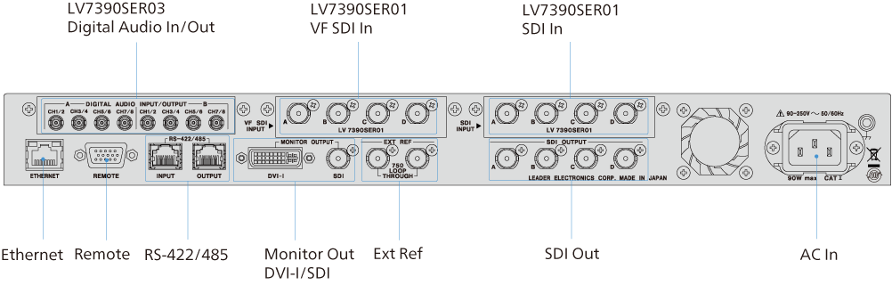 各入力信号は、それぞれ4つのSDI出力端子からシリアルリクロック出力されます。 - LV 7390SER01 | VF SDI INPUTオプション